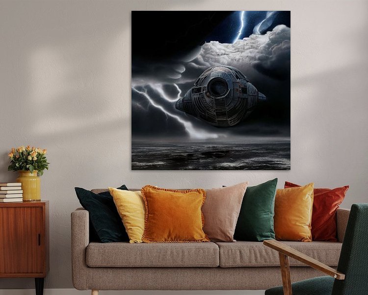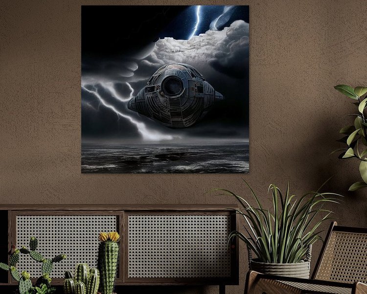 Pensez à ajouter « L’éternel observateur » à votre collection pour vous rappeler la beauté et le mystère que l’on peut trouver dans les coins inexplorés de l’univers. Laissez cette pièce inspirer votre imagination et éveiller votre curiosité en vous aventurant dans les territoires inexplorés de ce paysage extraterrestre et orageux.