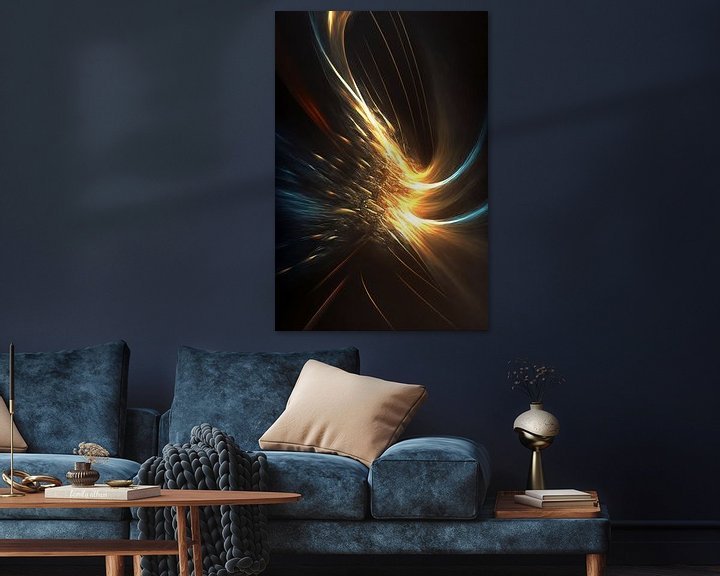 « Light Bending, The Lightspeed » transporte les spectateurs dans un voyage à travers le cosmos, en capturant de manière experte l’essence du temps qui s’écoule et de la lumière qui se plie à des vitesses inimaginables. Avec son mélange homogène de tons riches et d’éléments contrastés, ce chef-d’œuvre visuel évoque un sentiment de profondeur et de volume qui attire l’œil et captive l’imagination. L’utilisation artistique des techniques de clair-obscur ajoute une dimension unique aux formes abstraites, ce qui donne un spectacle hypnotique qui laissera vos invités sous le charme.
