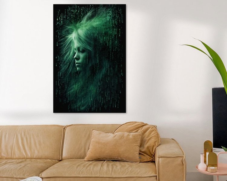 We hebben “Digital Dissolution,” een fascinerende en surrealistische visuele ervaring die je naar een andere dimensie brengt. Dit werk toont een vrouw die is ondergedompeld in een opvallende groene en zwarte digitale wereld, terwijl haar identiteit naadloos opgaat in een betoverende virtuele code. De unieke glitchcore-stijl voegt diepte en intrige toe aan dit kunstwerk. “Digital Dissolution” is een must-have voor diegenen die de mix van de menselijke ervaring met de digitale wereld waarderen, waardoor een verleidelijke balans van mysterie en schoonheid ontstaat. Met zijn ultra-high-definition resolutie belooft dit stuk een statement te maken in elke ruimte, omdat het de grenzen van kunst en verbeelding verlegt.