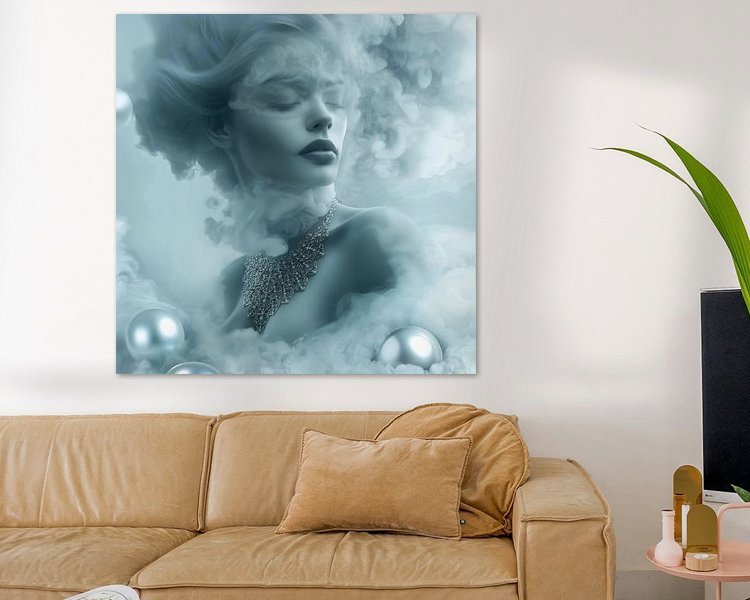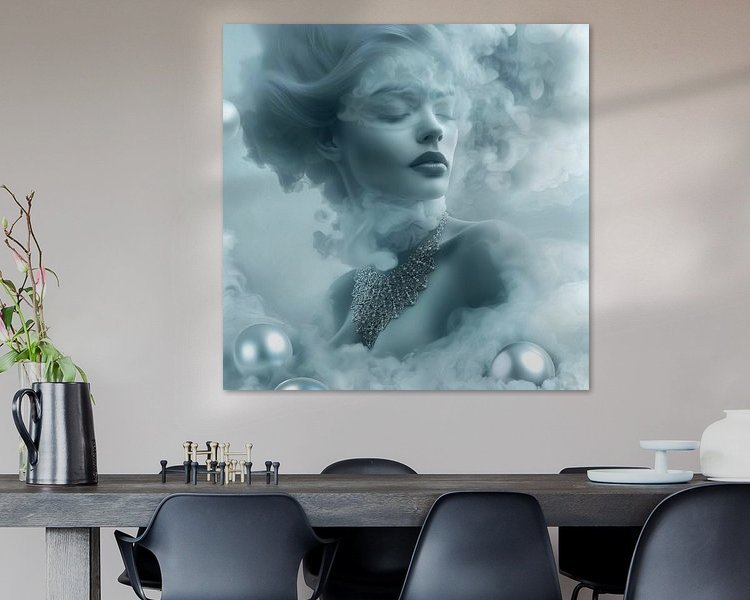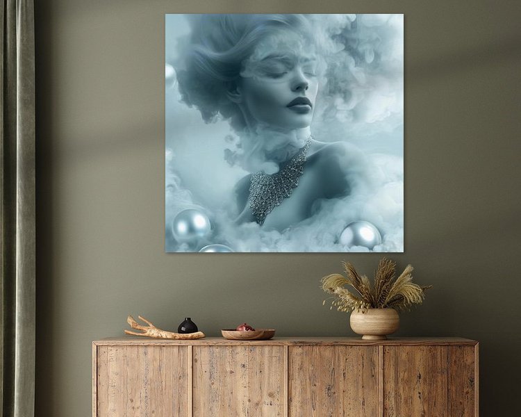 Emotionally, the work holds the idea of steadiness amid uncertainty. The mist suggests thoughts settling; the pearls read as collected moments of clarity; the ornate necklace becomes quiet armor. It carries the feeling of the calm that follows overwhelm, proposing that softness can be a form of strength.