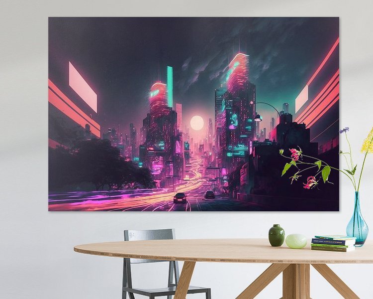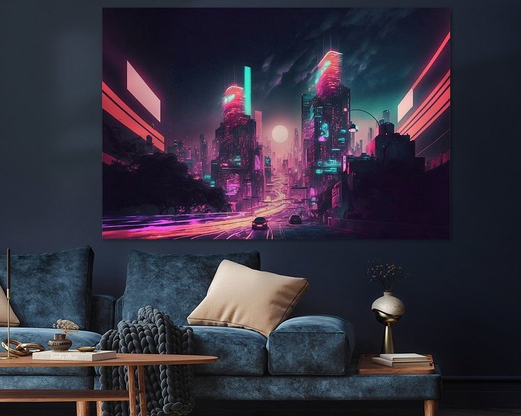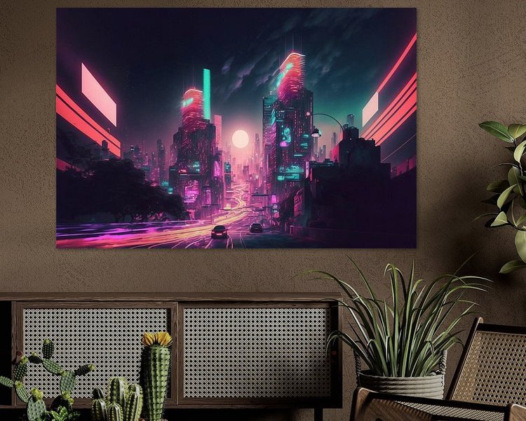 This piece is the perfect addition to elevate the ambiance of both game rooms and living rooms alike. Its intriguing visual narrative invites viewers to explore the intricacies of its design and get lost in the imaginative landscape it presents. The artwork's juxtaposition of retro and futuristic elements provides a unique and evocative conversation piece that will captivate your guests.